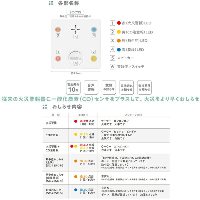 国内でトップ級のガス警報器のシェアを持つ新コスモス電機から2022年にリリースされた日本製チェッカーです。一酸化炭素だけでなく煙センサによる火災検出や、熱中症・乾燥の注意喚起も行います。10年感使用できる専用のリチウム電池が付属して価格も7000円以下と比較的安価です。