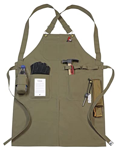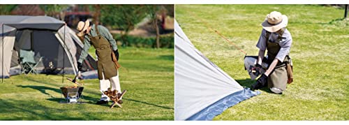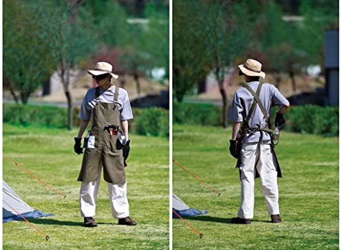 本品はおしゃれなだけではなりません。ポケットには工夫が豊富にありペグハンマーやペグを持ち運べるようにループがついています。そのため、テントやタープの設営時に非常に使いやすいエプロンです。また、蓋付きのポケットもあるため鍵などの貴重品も収納できます。そのため、本品はキャンプだけではなく作業用エプロンとしておすすめです。