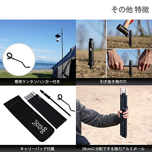 ランタン用のハンガーも付属し、購入後すぐに活用できます。ポールはもちろんのことペグやハンガーにも耐久性の高い素材を使用していますので、アウトドアで繰り返し使っても長持ちするでしょう。
