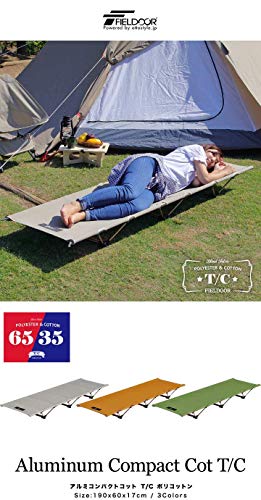 本品はコットンとポリエステルの混紡素材を使用した丈夫なTC生地が魅力的なローコットです。TC素材は熱に強く焚き火の火の粉で穴が空きにくい便利な特性があるため、焚き火の近くにコットを設置できます。