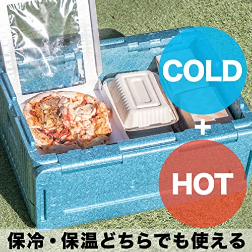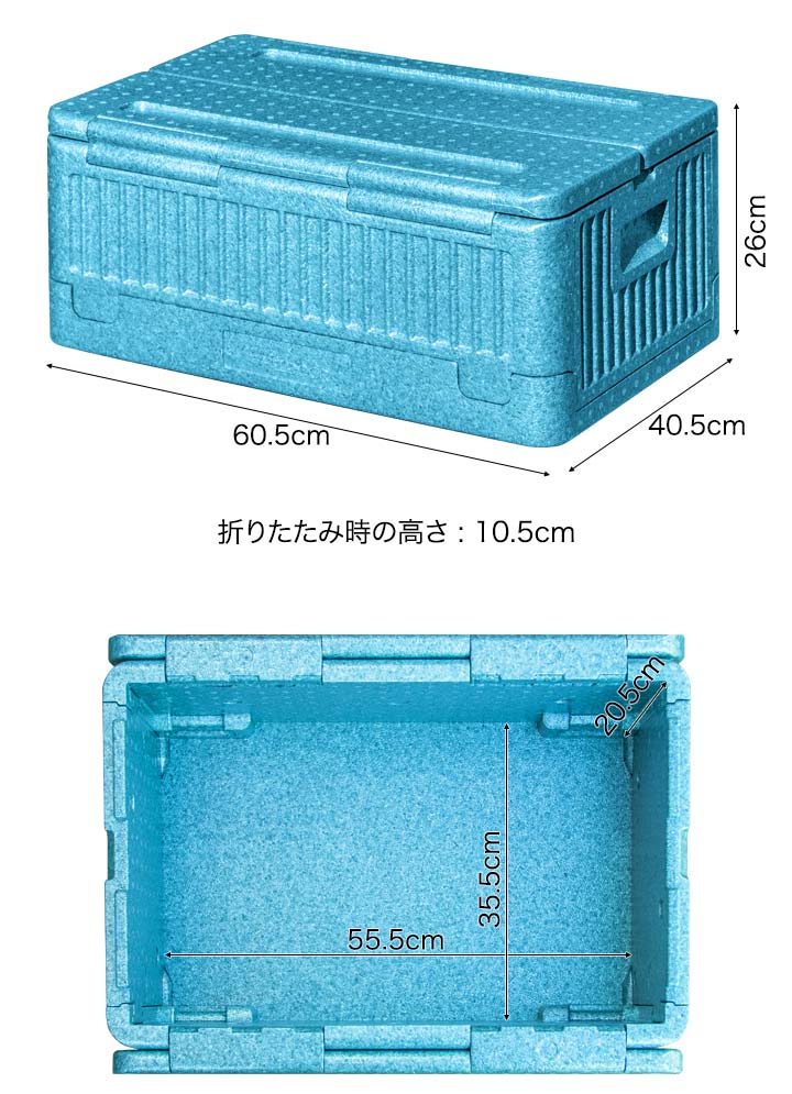 本品は発泡ポリプロピレン素材を使用した簡易クーラーボックスです。長辺のサイズが60cm以上と大容量のモデルですが、折りたたむと高さが半分以下になります。前述してきたモデルと比較すると簡易クーラーボックスのため保冷性は下がりますが、その分大きさに対し軽量で重量はわずか1kgしかありません。