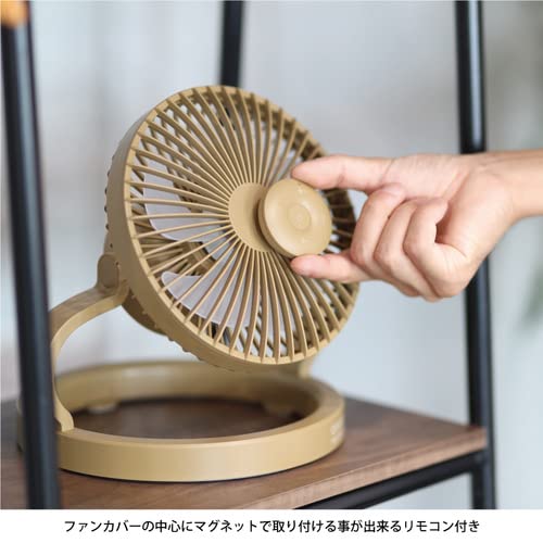 ロゴスが2022年にリリースしたコードレスタイプの扇風機です。蓄電式とAC電源、単1アルカリ乾電池の3通りの給電ができるため、使用場所を選ばず防災アイテムとしても活用できます。また、アウトドアブランドらしいオリーブカラーはキャンプ場によくなじむでしょう。