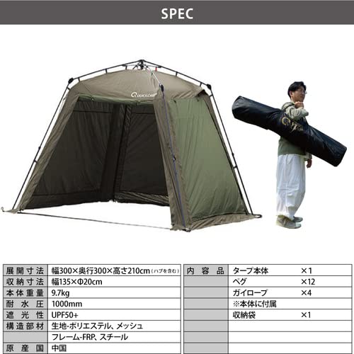 また、通気性を確保するベンチレーションや、地面付近の虫の侵入を防ぐスカートも付属しており、高い機能性があります。さらに、ワンタッチ構造が採用されているため、短時間で設営できることもポイントです。
