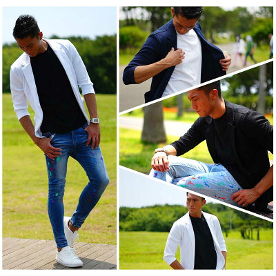 たとえ夏だとしても、特に格式が高いゴルフ場への行き帰りの際にはジャケットの着用が求められます。とはいえ暑いものは暑いので、薄手のサマージャケットなどを活用するのがおすすめです。下記のファッションを参考にしてみてください。
